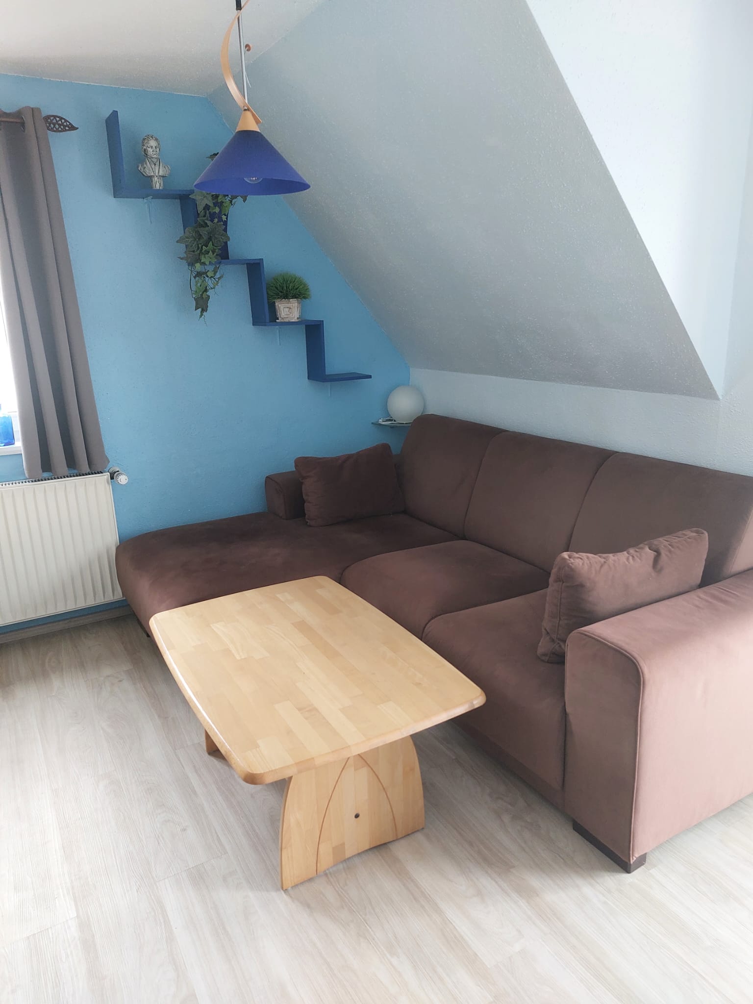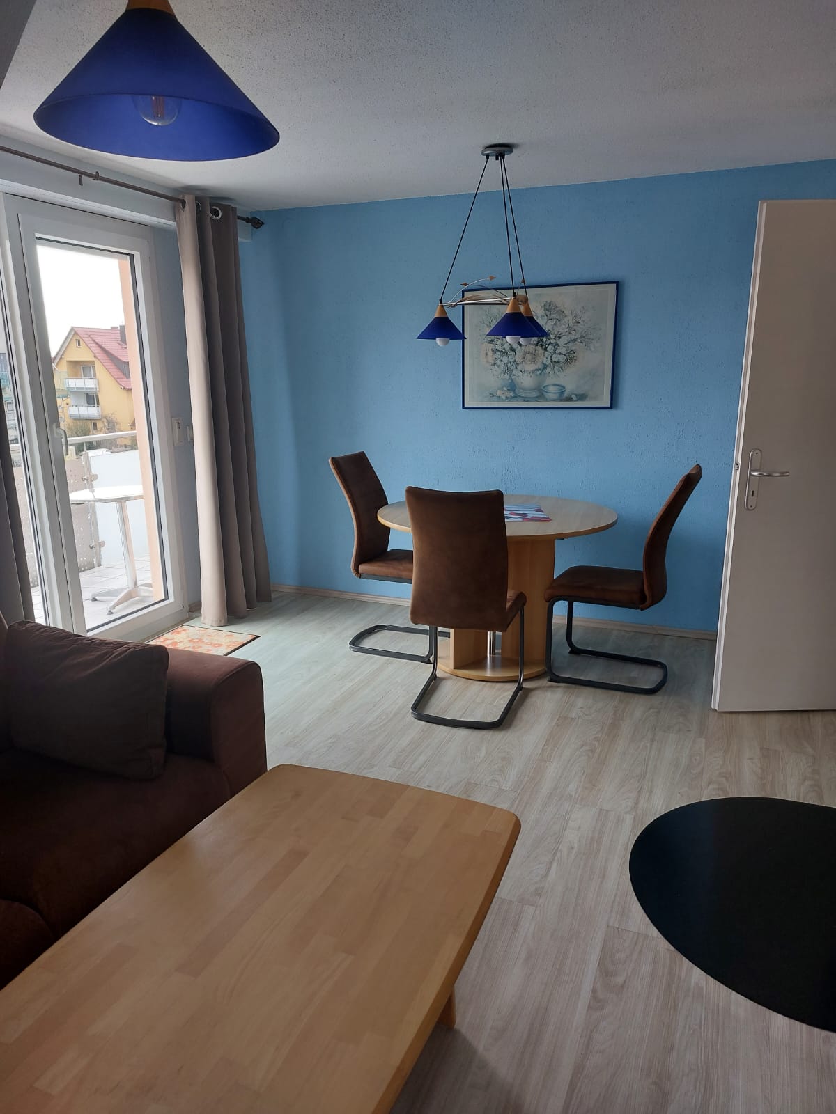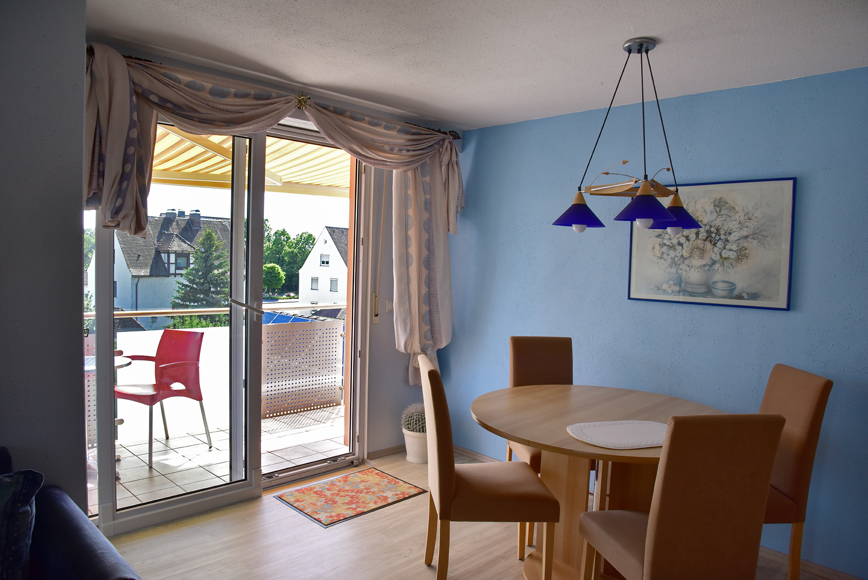Unsere helle, liebevoll eingerichtete Ferienwohnung mit 60 qm bietet zwei Schlafzimmer, ein gemütliches Wohnzimmer, eine voll ausgestattete Küche und einen sonnigen Südbalkon.