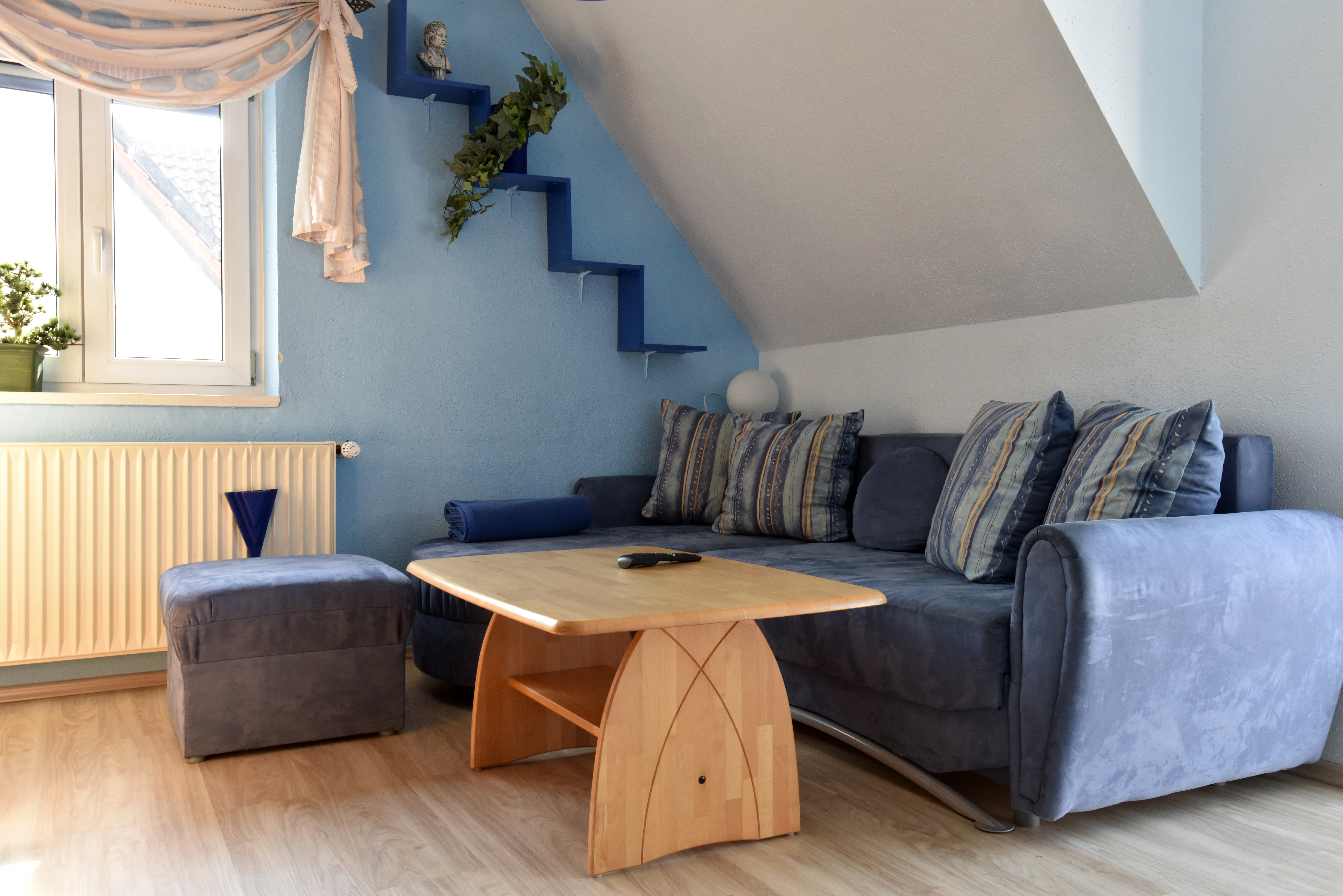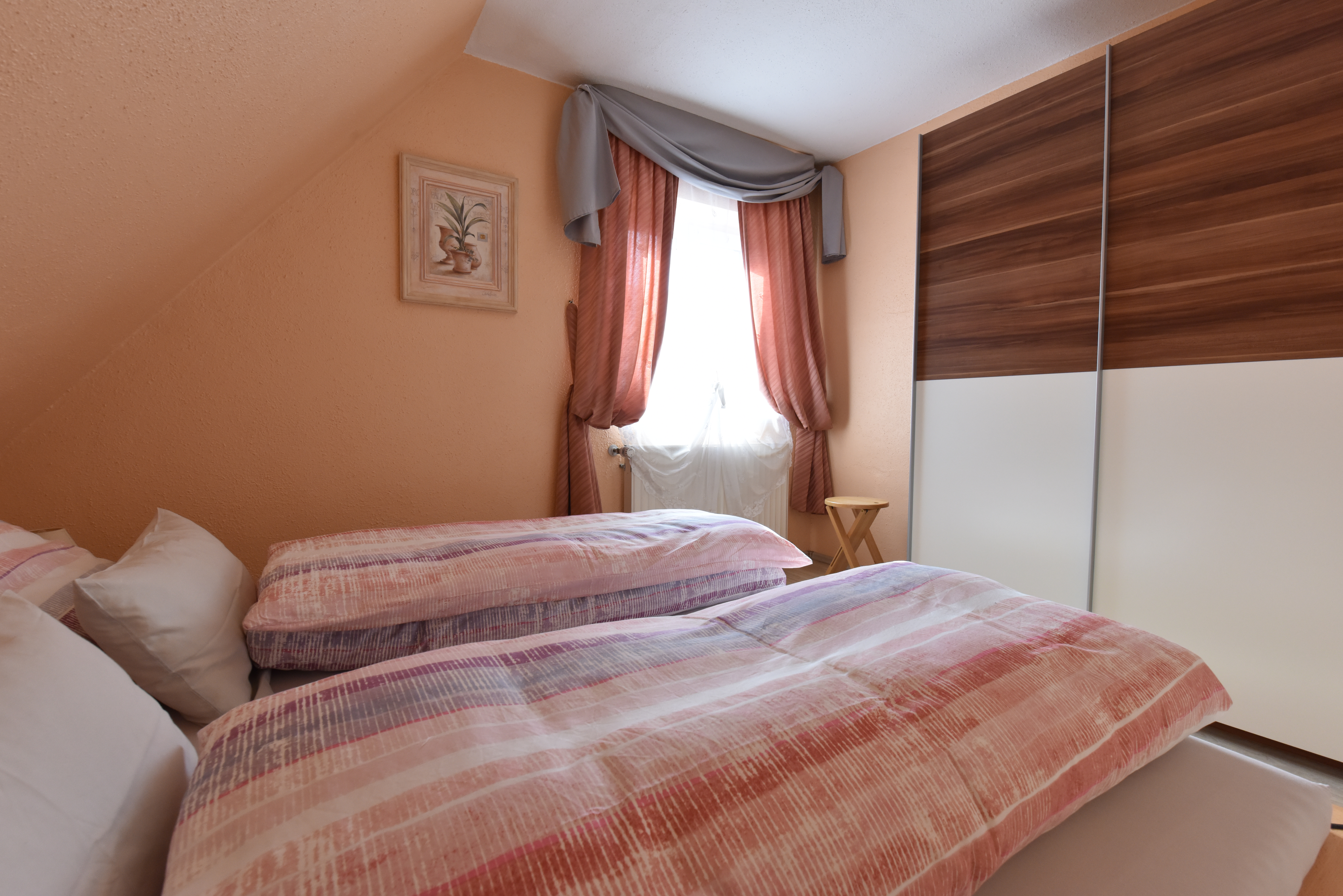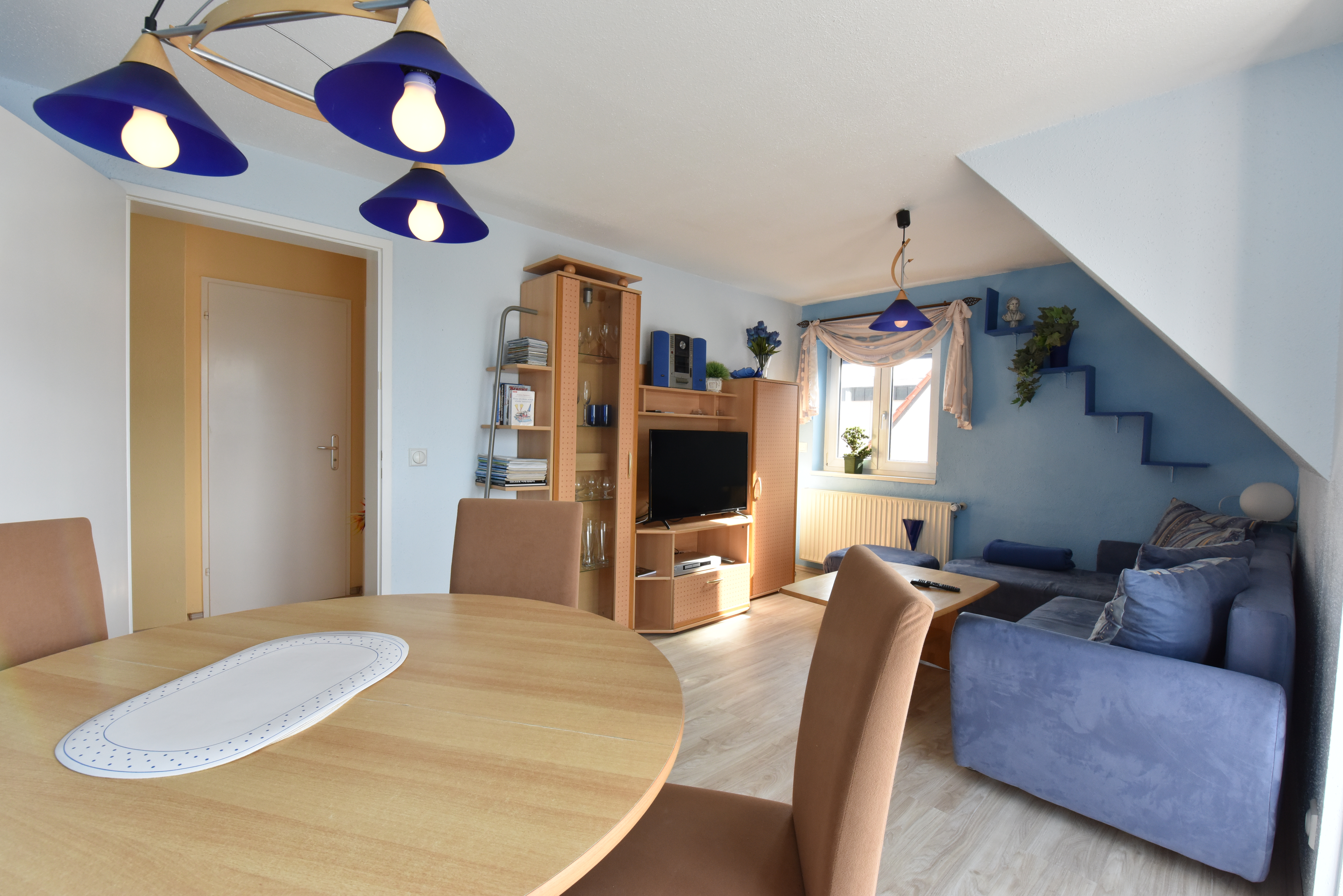 Unsere helle, liebevoll eingerichtete Ferienwohnung mit 60 qm bietet zwei Schlafzimmer, ein gemütliches Wohnzimmer, eine voll ausgestattete Küche und einen sonnigen Südbalkon.